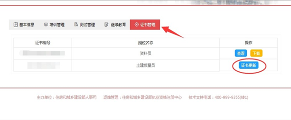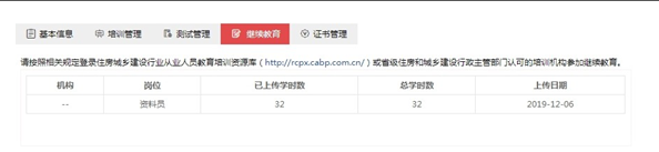 注冊成功進(jìn)入系統(tǒng)后,請完善個人信息,上傳本人照片( 必須為本人近期一寸白底免冠照片, 文件大小不超過80KB),請確保本人照片無誤,一經(jīng)上傳不可修改。在【證 書管理中】可查詢已經(jīng)由建設(shè)行業(yè)行政主管部門上傳的有效證書,完成繼續(xù)教育后即可換發(fā)電子培訓(xùn)合格證。