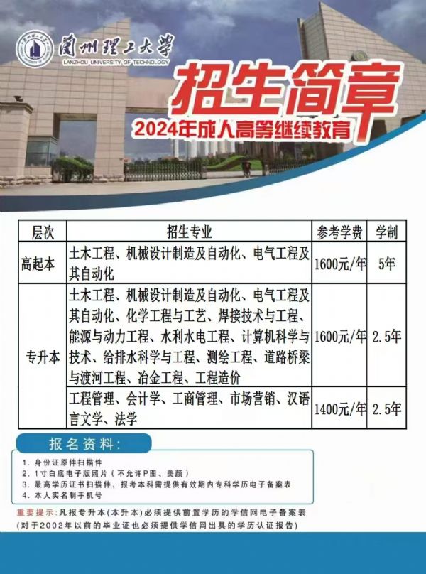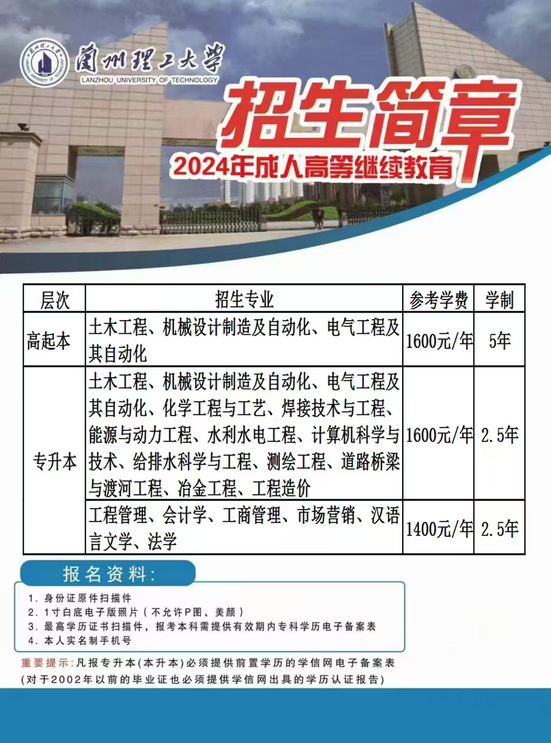 蘭州理工大學(xué)高等學(xué)歷繼續(xù)教育始于1983年成立的干部培訓(xùn)中心,1993年成立成人教育學(xué)院,2003年更名為繼續(xù)教育學(xué)院。蘭州理工大學(xué)的各類成人教育歸口繼續(xù)教育學(xué)院管理。